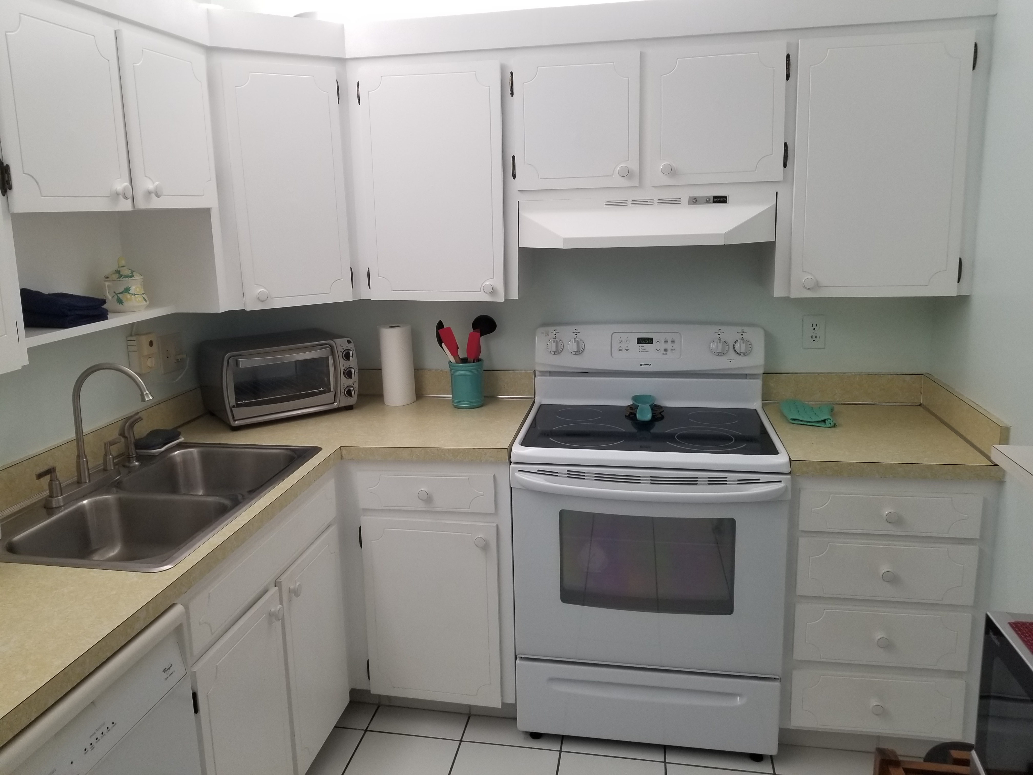 * Kitchen - refrigerator, dishwasher, range, microwave, toaster, plates, bowls, glasses, cups, utensils, pots and pans.